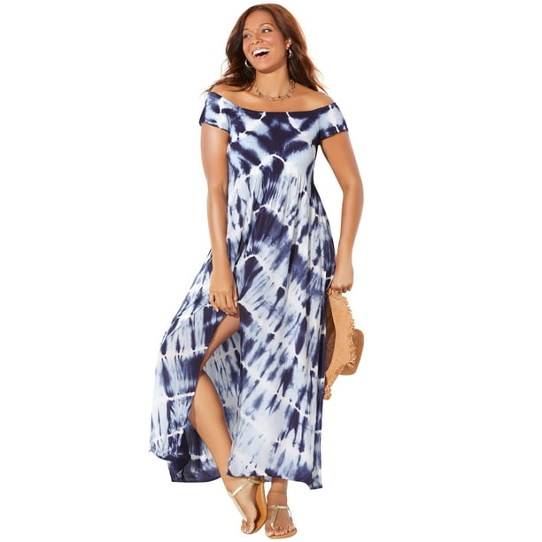 Swimsuits For All Women S Plus Size Harper Tie Dye Cover Up Maxi Dress 10 12 Blue Tie Dye Walmart Com